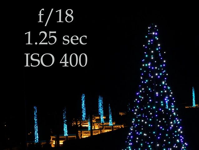 Those little lights are brighter than you think. Auto exposure will bleach out the color. Use manual exposure and evaluate for the lights. Let the dark areas go black. The lights are the subject.